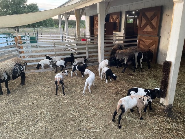 Our lambs are born on our farm and raised with care. They spend their first few days of life bonding with their mothers in a special pen, called a lambing jug. While there, we can keep a closer eye on them and intervene if they need to be bottle fed or some extra TLC. After their first week, our lambs get their ears pierced with their USDA required ID tags and the boys will be castrated if we intend on selling them for meat before they get introduced to the main flock of sheep. They spend their next week or two of life getting to know the rest of the flock, making friends with the other young lambs, learning to follow their mothers around the barn and paddock area, and learning to respect fences as barriers. After that they begin joining the flock out in the pastures each day.